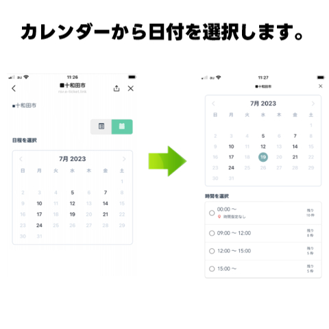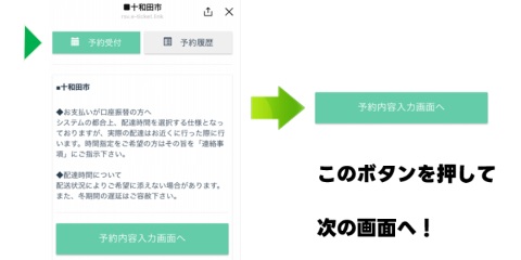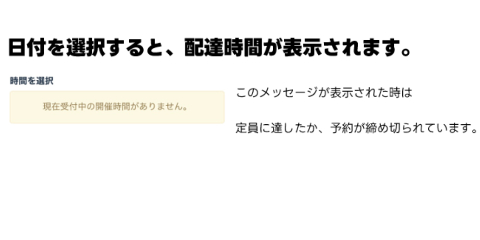 配達エリアを選択すると、予約受付画面が表示されます