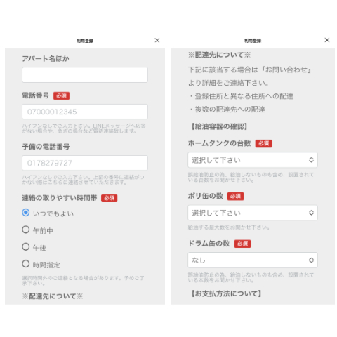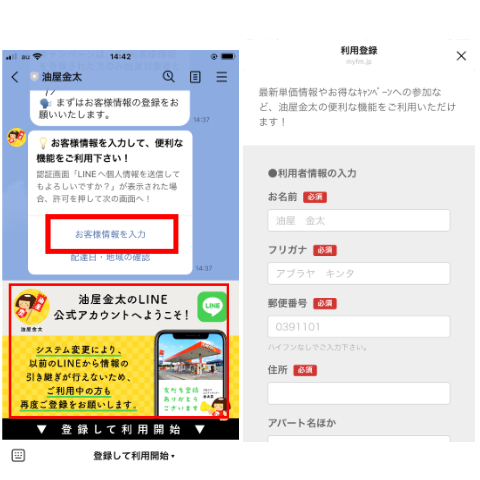 お客様情報の登録をお願いします